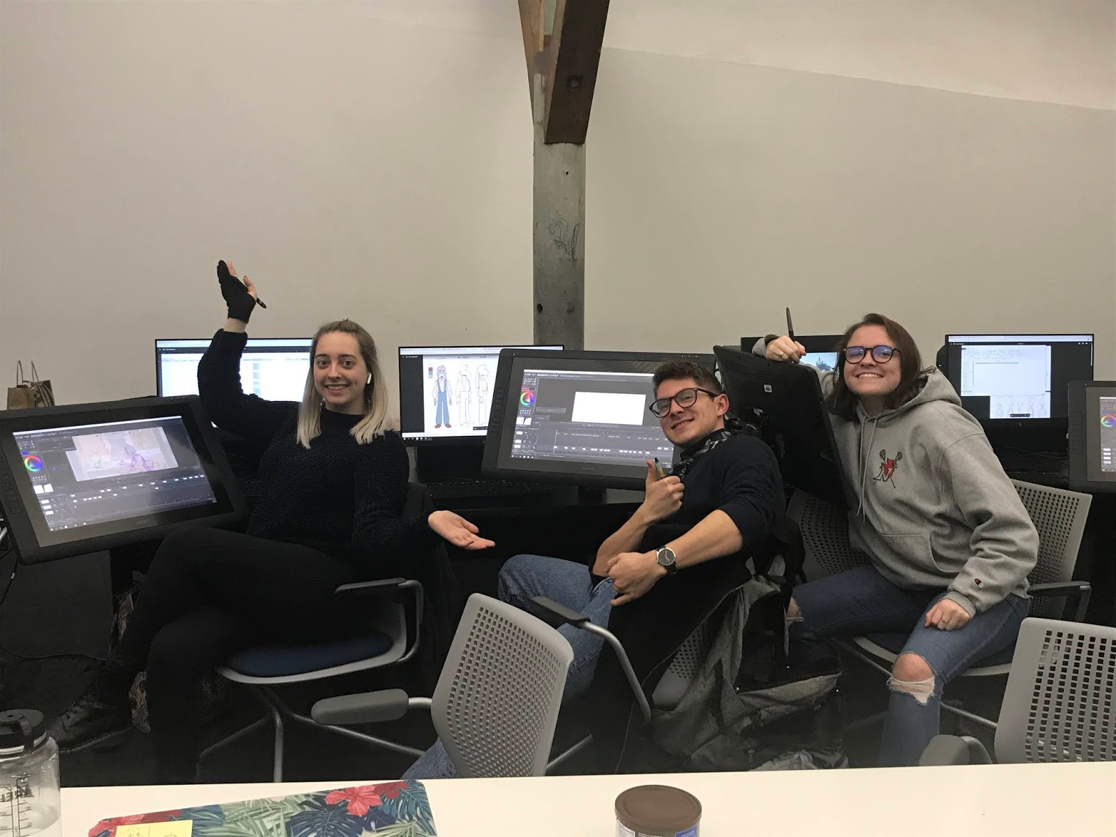 | Half the crew. Super tired after a 2-hour meeting. Now back to animating! |